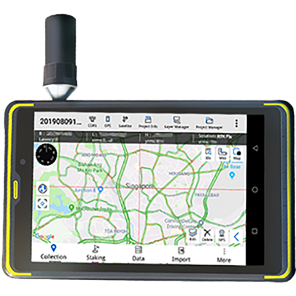 Pesant seulement 400 g et offrant jusqu'à 10 heures d'autonomie, le système de contrôle de poteau s'allume d'un simple bouton et se connecte instantanément. Il permet de contrôler à distance la station totale sur plus de 600 m, avec une centrale inertielle de haute précision et une compensation optique de l'inclinaison pour des mesures précises, même sur terrain accidenté.